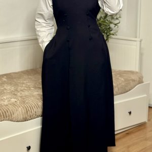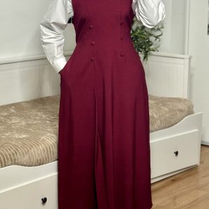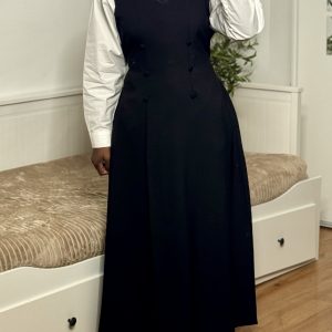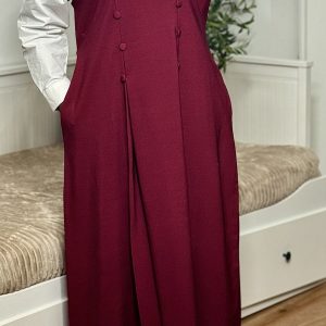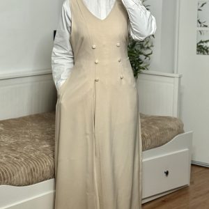 Cette robe longue sans manche se distingue par sa coupe élégante et structurée, parfaite pour des looks sophistiqués. Elle présente un décolleté en V et une ligne épurée qui allonge la silhouette. Les boutons décoratifs ton sur ton à l’avant apportent une touche de raffinement supplémentaire.